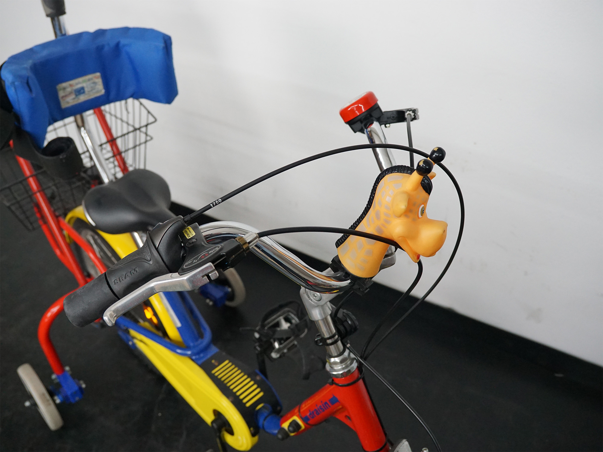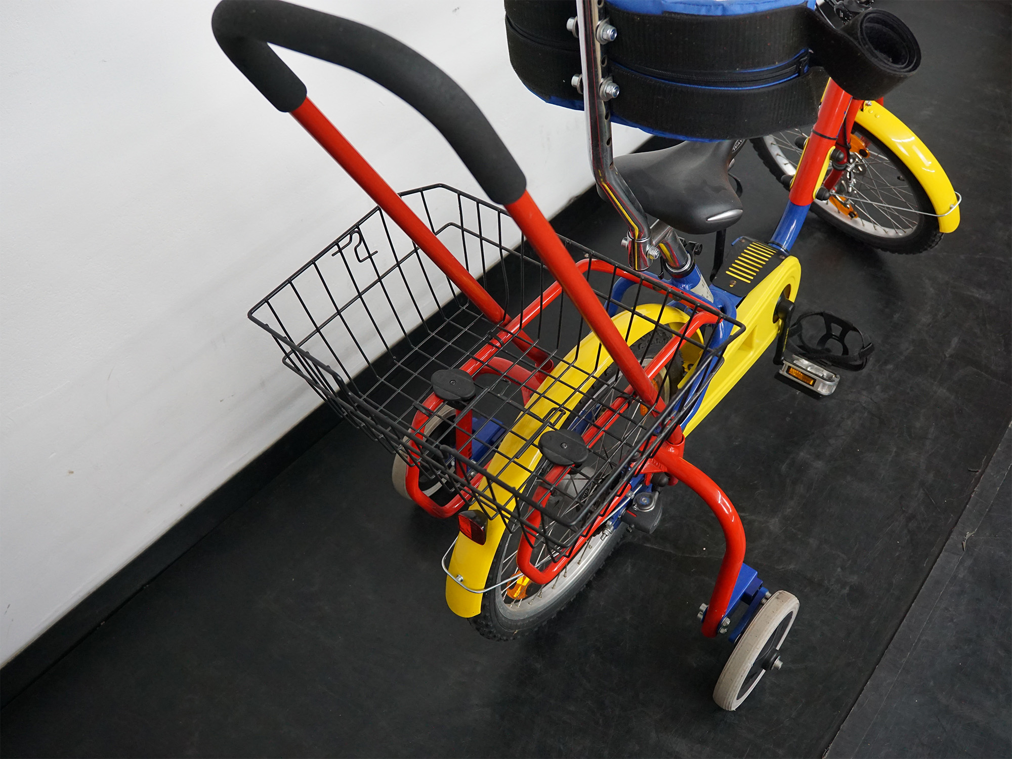 | Zubehör | Korb, Führungsgriff hinten, Rückenlehne mit Gurt, Käfigpedale, Stützräder |