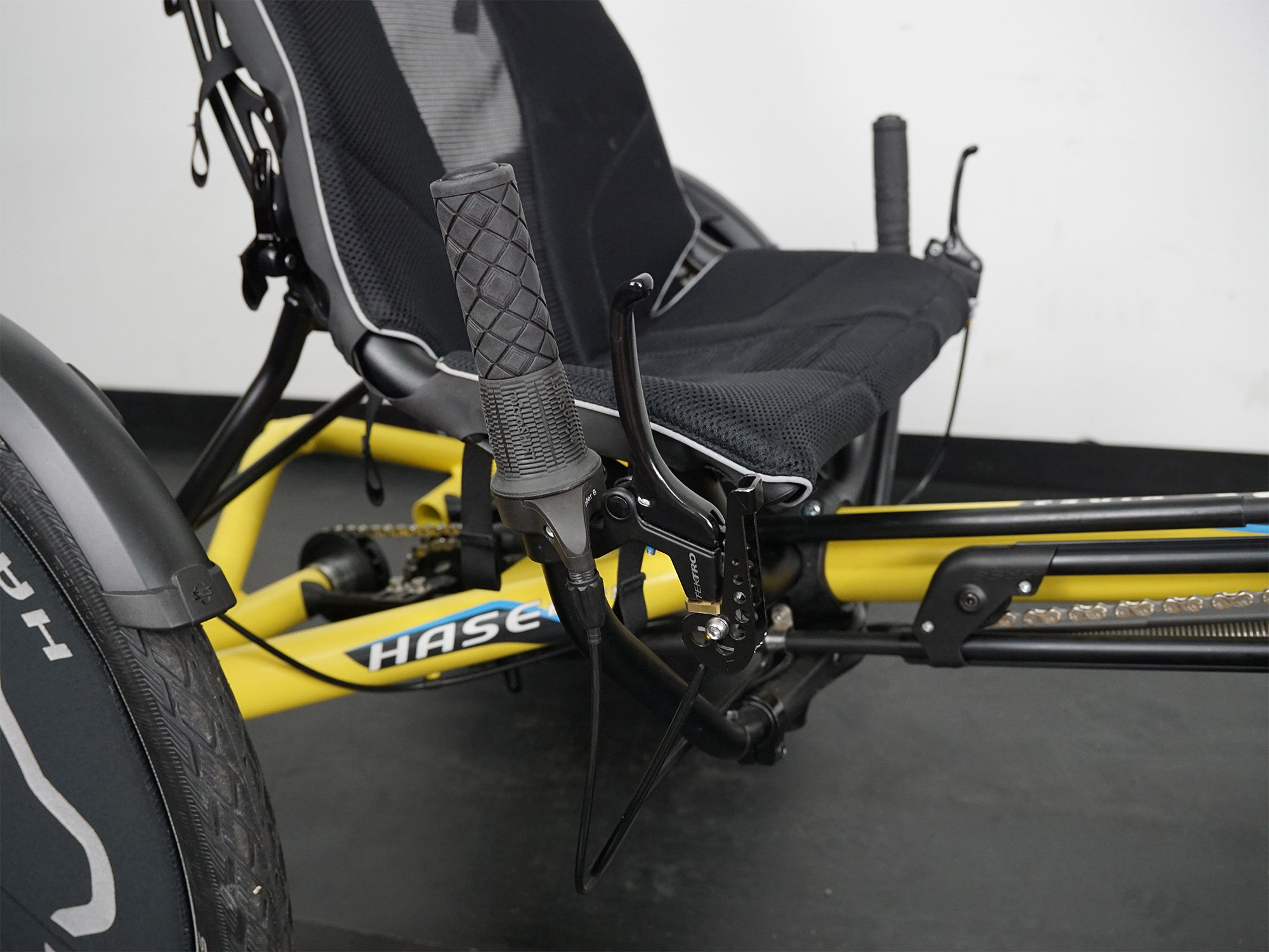 Entdecken Sie das Trix von Hase Bikes – das ideale Liegedreirad für sportliche Kids, die herkömmliche Zweiräder nicht fahren können. Dieses Trike befindet sich in einem ausgezeichneten Zustand und bietet dank seines tiefen Schwerpunkts eine Kippsicherheit für das Rad und Ihr Kind. Der Drehgriffschalter ermöglicht es den kleinen Fahrern, mühelos durch die 8 Gänge zu schalten. Die Pedalen sind mit Haken und Riemen ausgestattet, um ein Abrutschen zu verhindern. Mit dem Trix können Kinder spielerisch ihre Mobilität erleben und dabei von der besonderen Stabilität und dem sportlichen Design dieses einzigartigen Liegedreirads profitieren.
