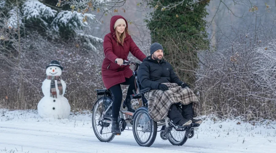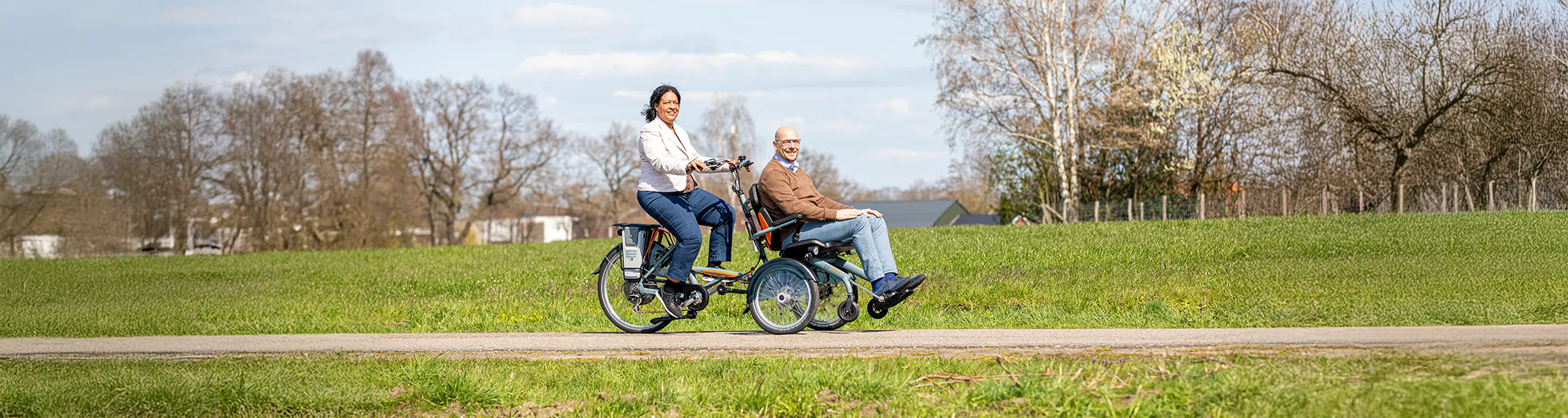 Um auch mit Menschen, die auf einen Rollstuhl angewiesen sind, Fahrrad fahren zu können, gibt es zwei Grundlegende Möglichkeiten: Ein Rollstuhl-Transportrad, sozusagen ein Lastenrad speziell für Rollstühle, oder ein Fahrrad mit einem vor dem Lenker angebauten Sitz. Der Unterschied liegt in dem Wunsch, den Rollstuhl mitnehmen zu wollen.