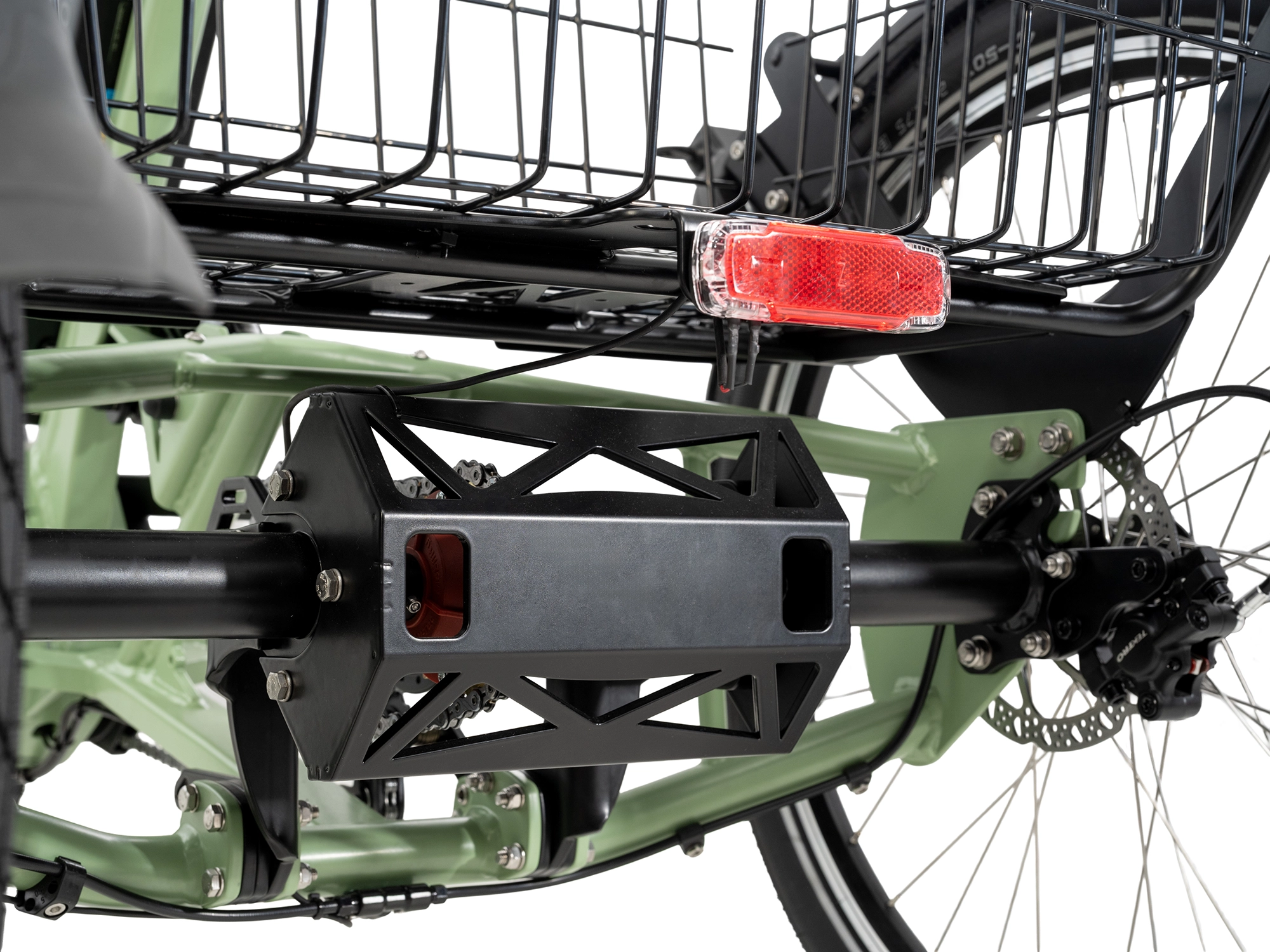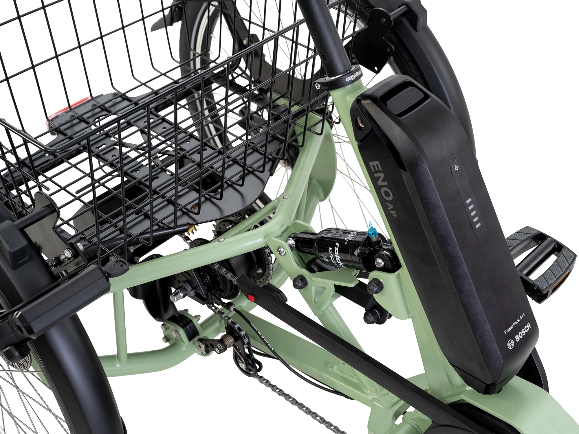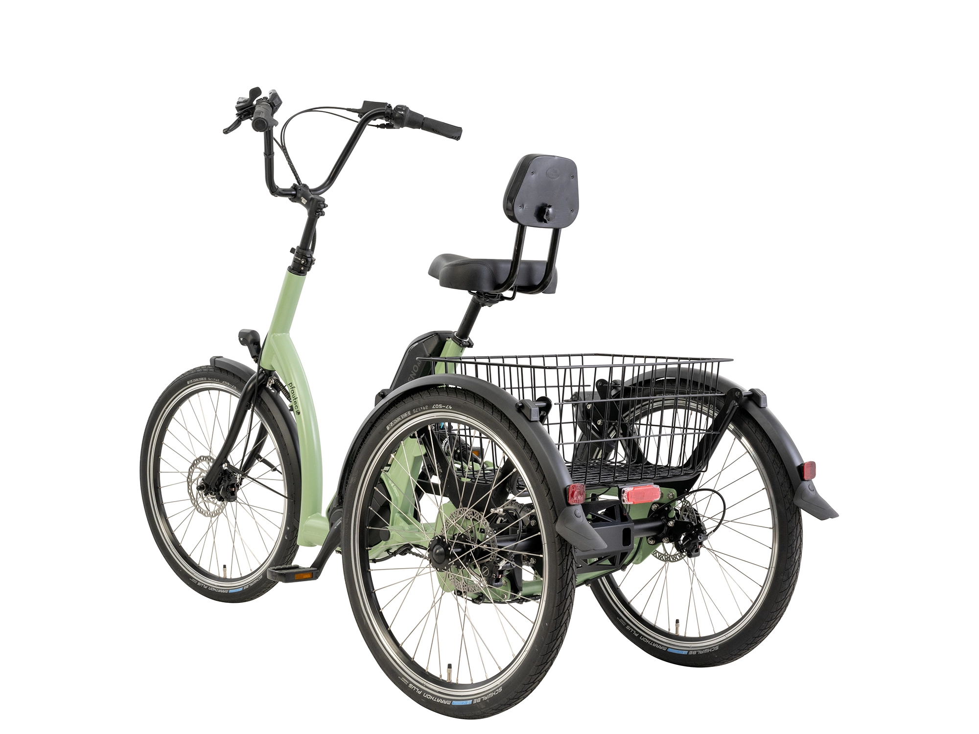 6Das pfautec Eno AP ist ein modernes Dreirad mit elektrischer Unterstützung, das Sicherheit, Komfort und Alltagstauglichkeit vereint. Der tiefe Einstieg und die ergonomische Sitzposition ermöglichen ein müheloses Aufsteigen und entspanntes Fahren. Ausgestattet mit einem Bosch Active-Line-Plus-Motor, 545-Wh-Akku und 7-Gang-Schaltung bietet das Eno AP zuverlässige Unterstützung auf Stadt- und Ausflugsstrecken. Hydraulische Scheibenbremsen, Differential sowie pannensichere Reifen sorgen für ein hohes Maß an Stabilität und Sicherheit. Mit großzügigem Gepäckkorb und kompletter LED-Beleuchtung ist das Eno AP eine ideale Mobilitätslösung für alle, die Wert auf Komfort und Verlässlichkeit legen.