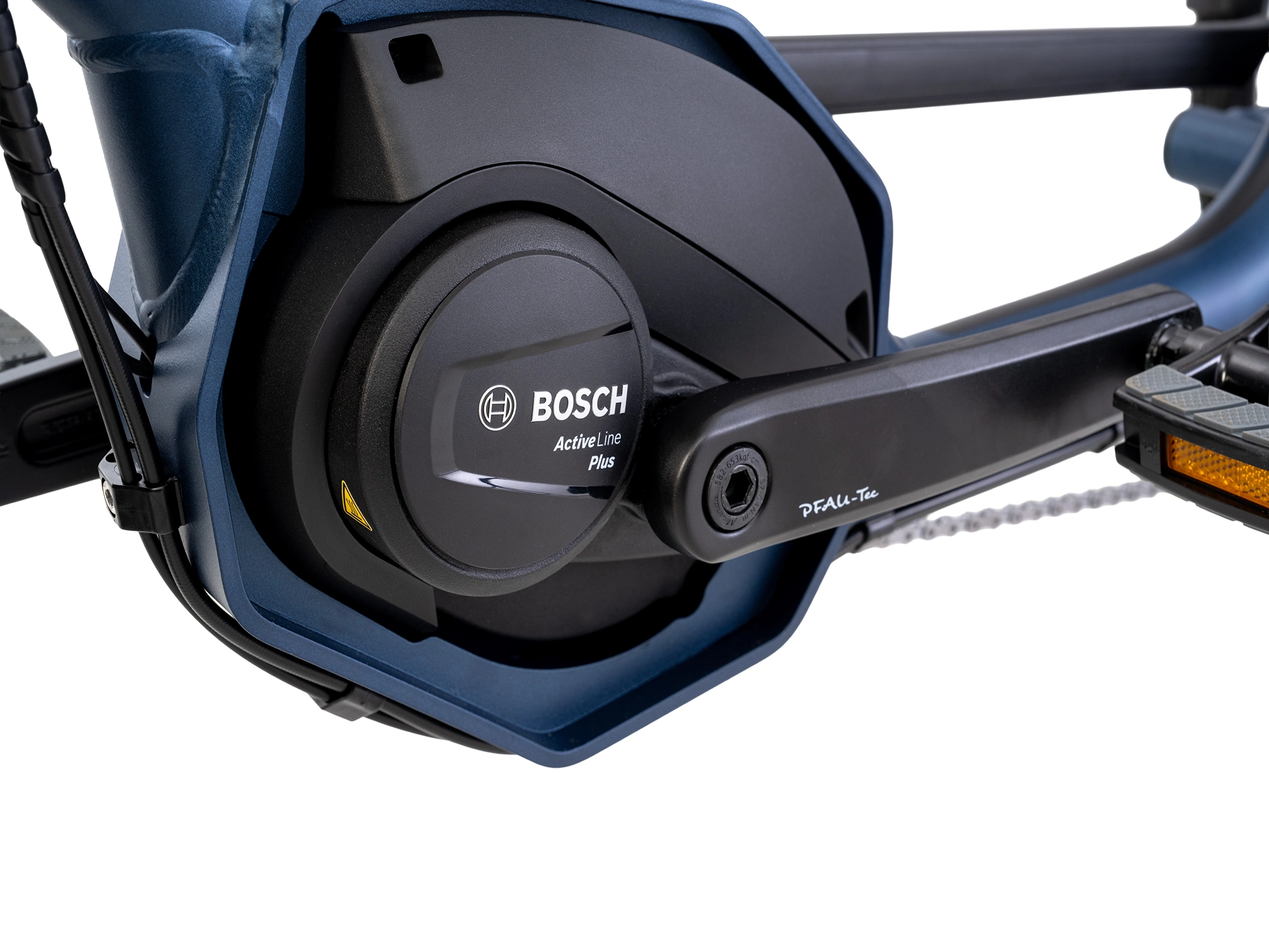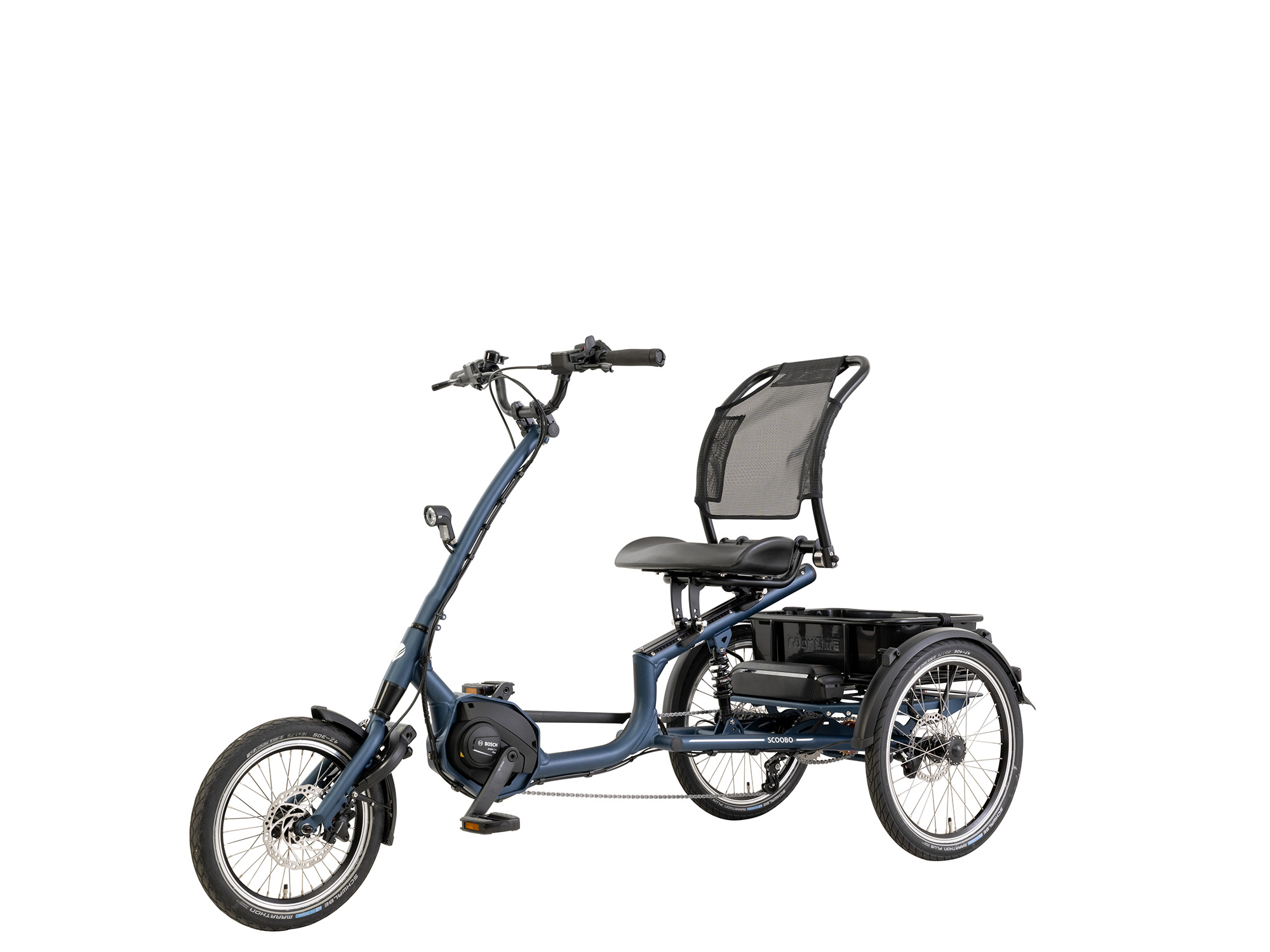 Der Scoobo Smart bringt Sie zuverlässig durch die Stadt und über das Land. Dank des hochwertigen E-Antriebssystems von Bosch (Active-Line-Plus) und des leistungsfähigen Akkus ist dieses Dreirad der ideale Begleiter für ausgedehnte Touren, auch weit über die Stadtgrenzen hinaus.Für maximale Sicherheit sorgen die hydraulischen Scheibenbremsen an Vorder- und Hinterrad, die mit einer praktischen Feststellfunktion ausgestattet sind  ideal für sicheres Parken. Ergänzt wird das angenehme Fahrerlebnis durch die leichtgängige 7-Gang-Nexus-Freilaufnabe von Shimano, die eine präzise und komfortable Gangwahl ermöglicht.Durch den tiefen Einstieg wird das Auf- und Absteigen erleichtert, sodass Sie jederzeit bequem und sicher starten können. Mit dem Scoobo Smart erleben Sie Mobilität auf höchstem Niveau – modern, zuverlässig und mit durchdachten Details, die jede Fahrt zu einem Vergnügen machen.