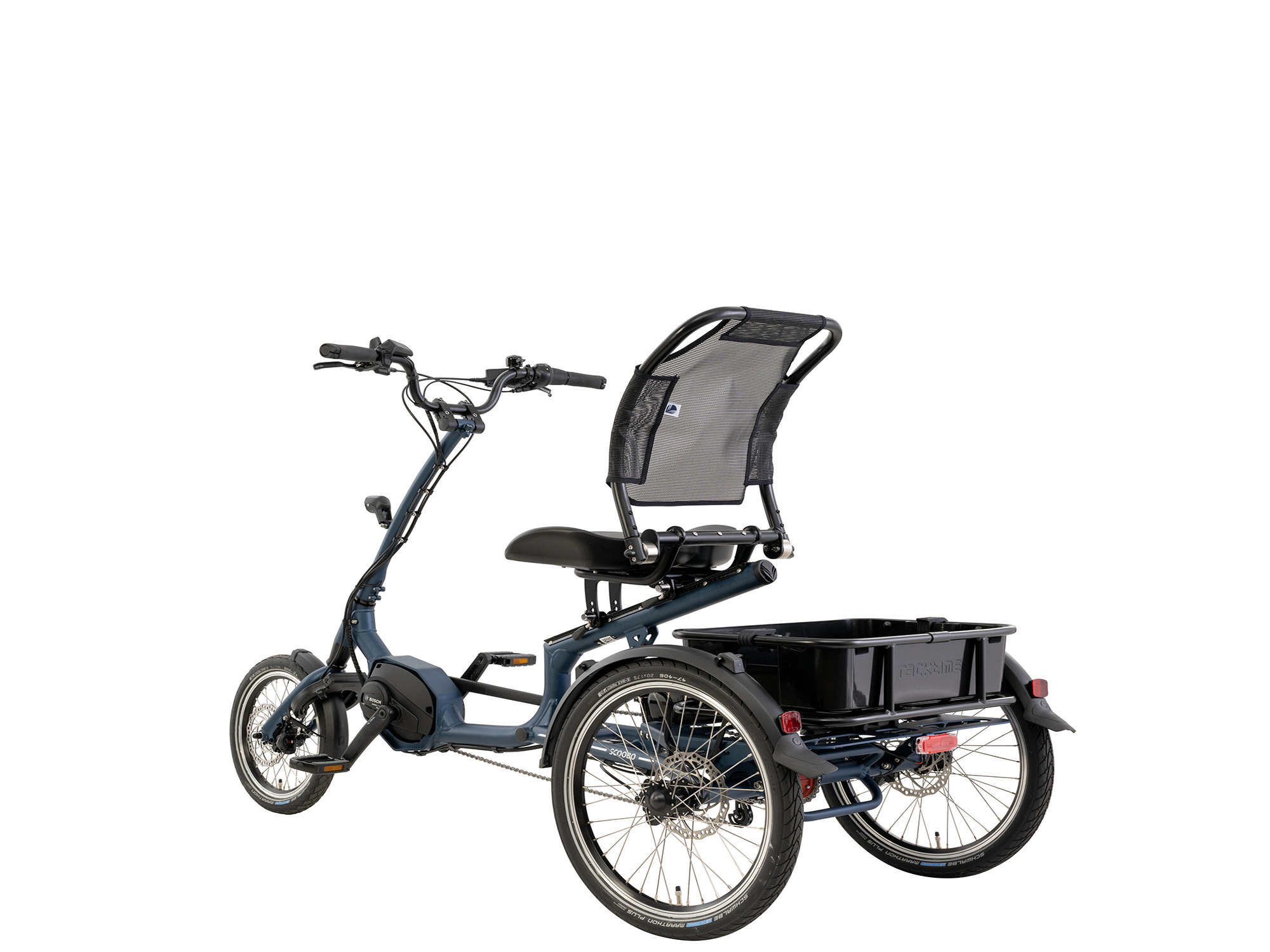 Die sportliche-elegante Variante aus dem Hause Pfautec ist das Sesseldreirad Trizon. Komponenten wie die 7-Gang-Schaltung, hydraulische Scheibenbremsen sowie gefederte Hinterradschwinge sorgen für ein sportliches Fahrvergnügen. Das Zusammenspiel aus den pannensicheren Reifen in zwei verschiedenen Größen und einem Differential geben dem Rad Wendigkeit. Die durchdachte Rahmengeometrie mit tiefem Schwerpunkt sorgt für eine hohe Fahrsicherheit und für eine knieschonende Beinstellung beim Fahren. Das Auf- und Absteigen wird Ihnen durch den niedrigeren Einstieg ebenfalls leicht fallen. Beim Anhalten können Sie Ihre Füße sicher auf den Boden stellen. Dieses Dreirad verfügt über einen großen, gepolsterten Sitz mit Rückenlehne, der an die Körpergröße angepasst werden kann. Das abgebildete Fahrrad dient als Beispiel und kann je nach Ausstattung vom angezeigten Preis abweichen. Jedes Rad ist individuell konfigurierbar. Gemeinsam konfigurieren wir Ihr Rad!    Motor optional Beleuchtung LED Scheinwerfer mit Rücklicht, Nabendynamo Gangschaltung 7-Gangschaltung mit Freilauf Bremsen hydraulische Scheibenbremsen Feststellbremse/Ständer Feststellbremse Maximales Benutzergewicht 154 kg Gewicht (Fahrrad, inkl. Elektrosystem) 34 kg Gesamtlänge 193 cm Gesamtbreite 76 cm Radgröße vorne 16'', hinten 20''