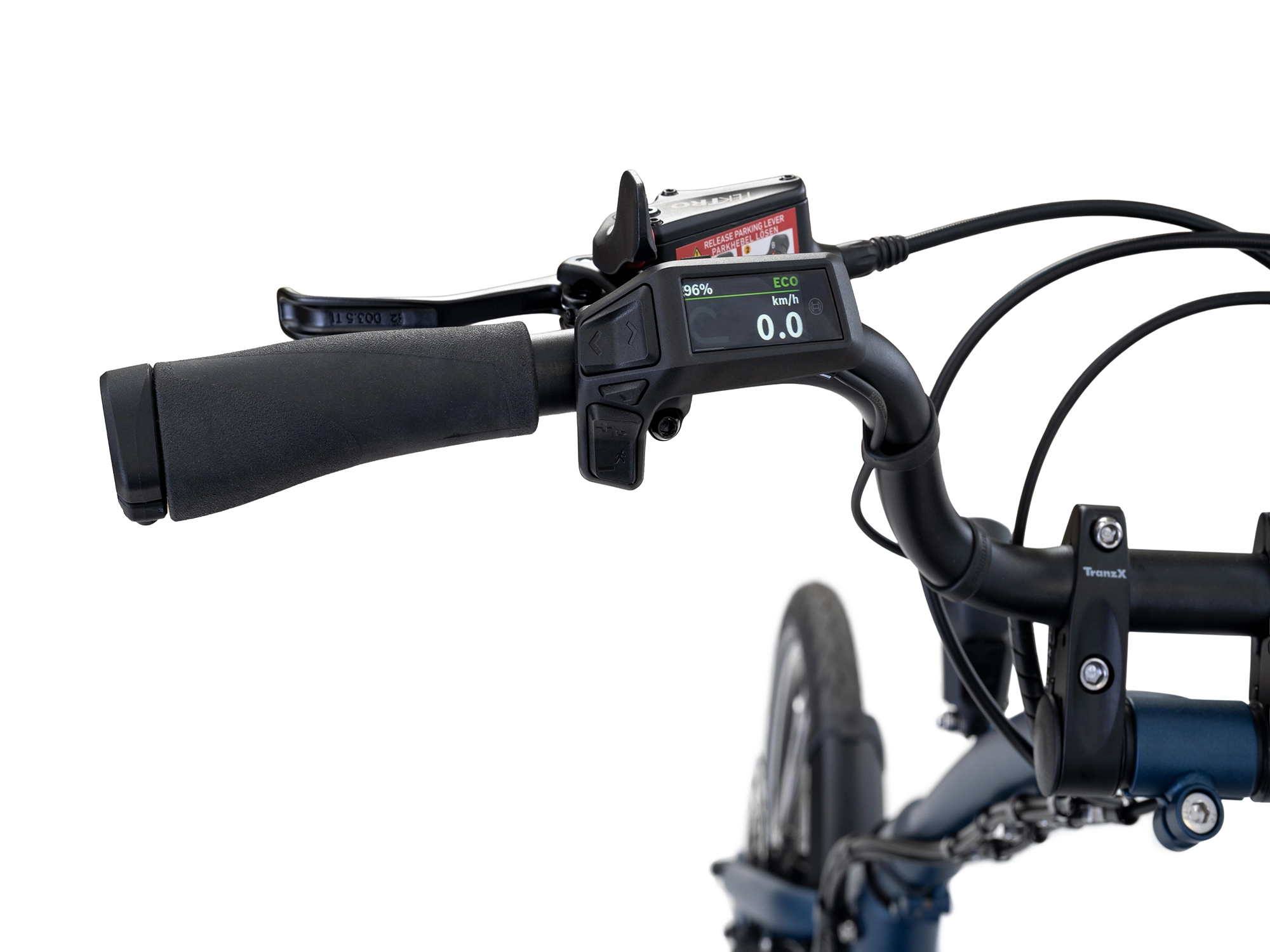 Das HP Velotechnik Delta TX vereint perfekt Fahrkomfort und Sicherheit. Durch eine hohe Sitzposition und einen tiefen Einstieg wird das Auf- und Absteigen mühelos. Der stabile Alurahmen gewährleistet Sicherheit auf der Straße, und die verstellbare Sitzposition sorgt für eine optimale Fahrhaltung. Die übersichtlich angeordneten Bedienelemente sind leicht zugänglich. Die automatische Enviolo-Schaltung übernimmt das Gängeschalten und mit nur 32 kg lässt sich das Delta TX leicht teilen, was den Transport im Auto oder das platzsparende Abstellen erleichtert.Das abgebildete Fahrrad dient als Beispiel und kann je nach Ausstattung vom angezeigten Preis abweichen. Jedes Rad ist individuell konfigurierbar. Gemeinsam konfigurieren wir Ihr Rad!  Motor Bafang M300  Akku 450 Wh Beleuchtung B&M IQ-XS, Scheinwerfer 80 LUX, Rücklicht B&M 2C DC Gangschaltung Enviolo Automatiq, Nabengangschaltung, automatisch Bremsen Shimano MT200, hydraulische Scheibenbremsen, hinten (einzeln gebremst) Feststellbremse/Ständer Feststellbremse Zuladung max. 150 kg Gewicht (Fahrrad, inkl. Elektrosystem) ab 32 kg Gesamtlänge 199 cm Gesamtbreite 75 cm Radgröße 20"