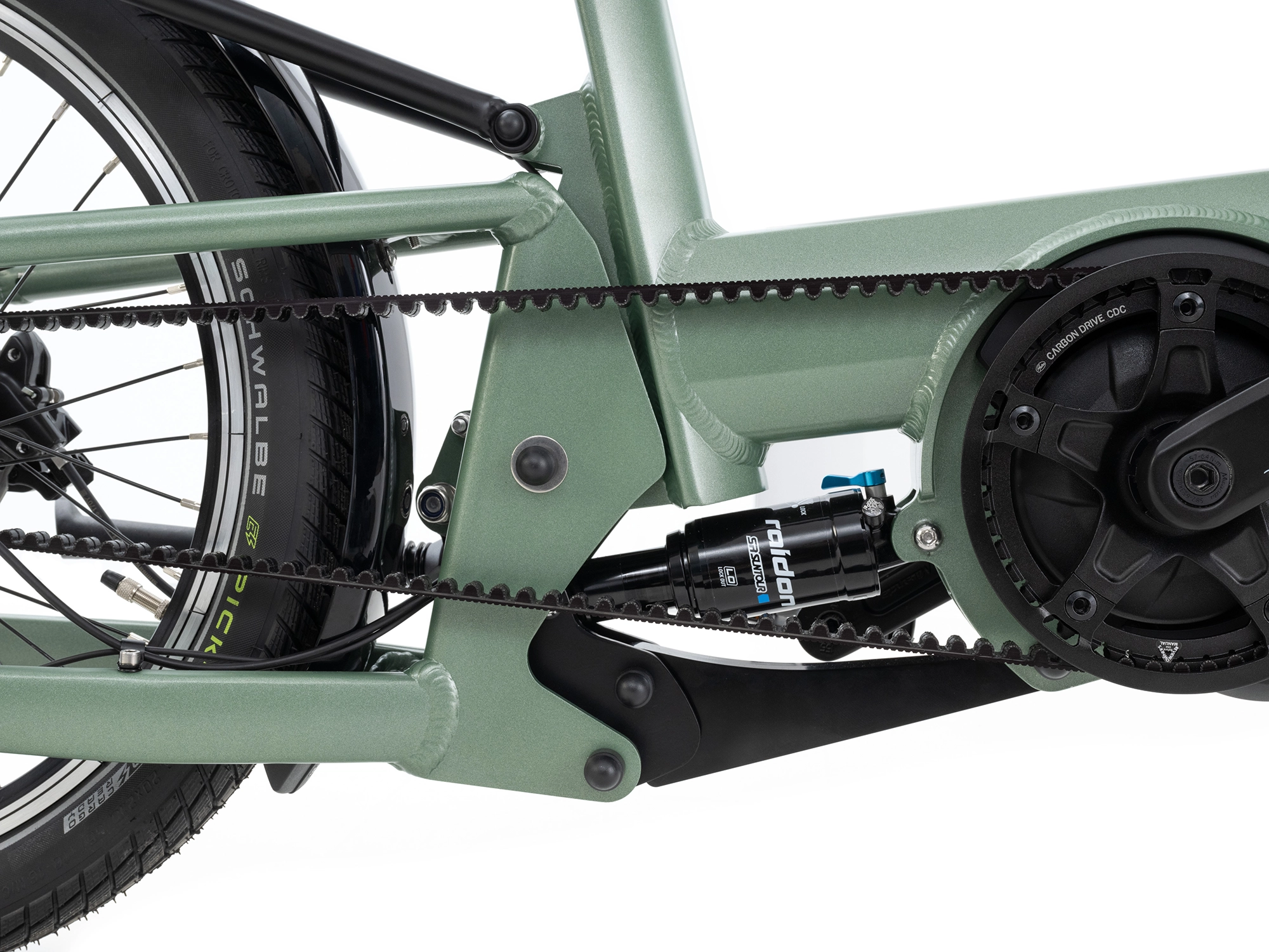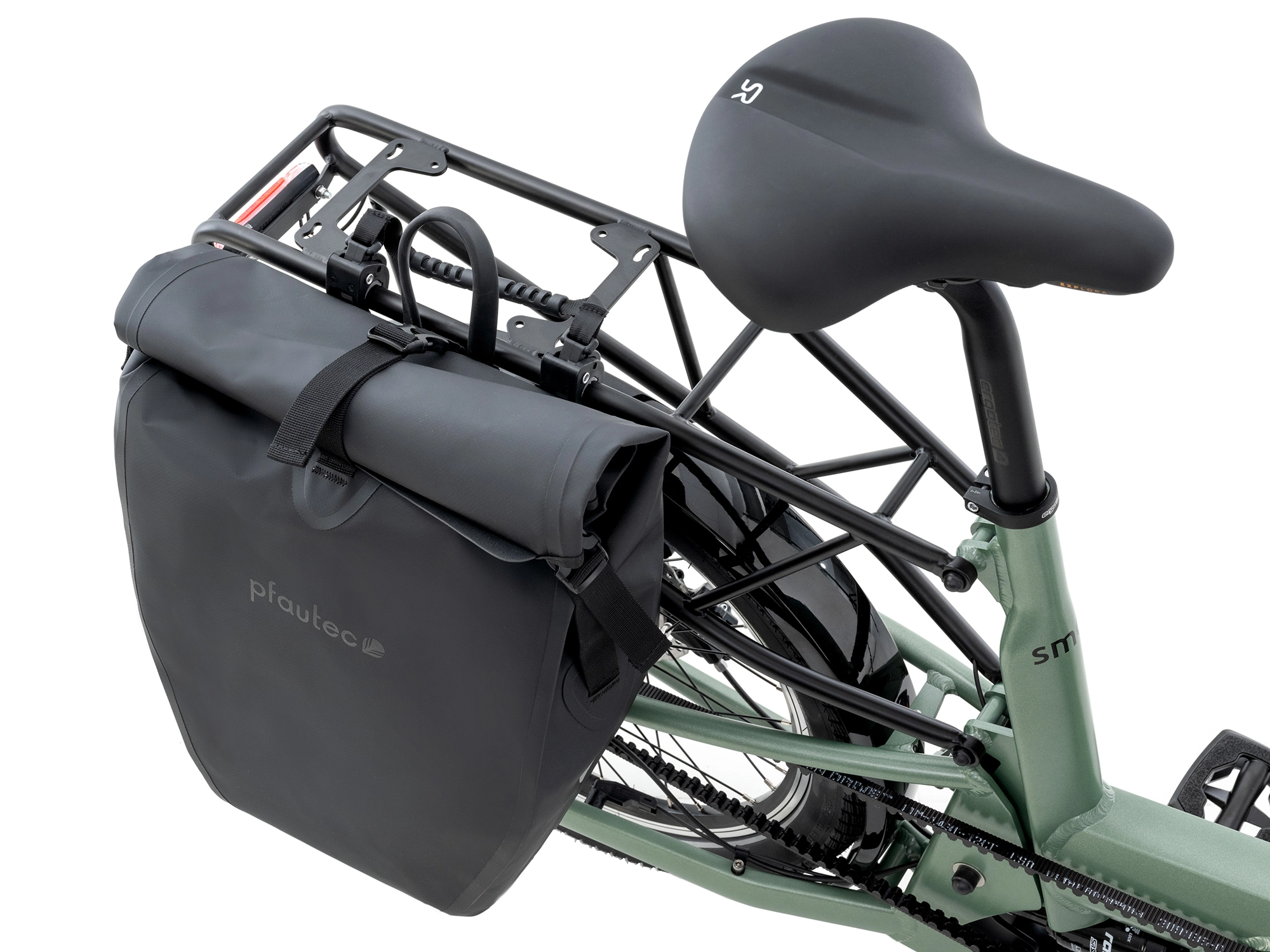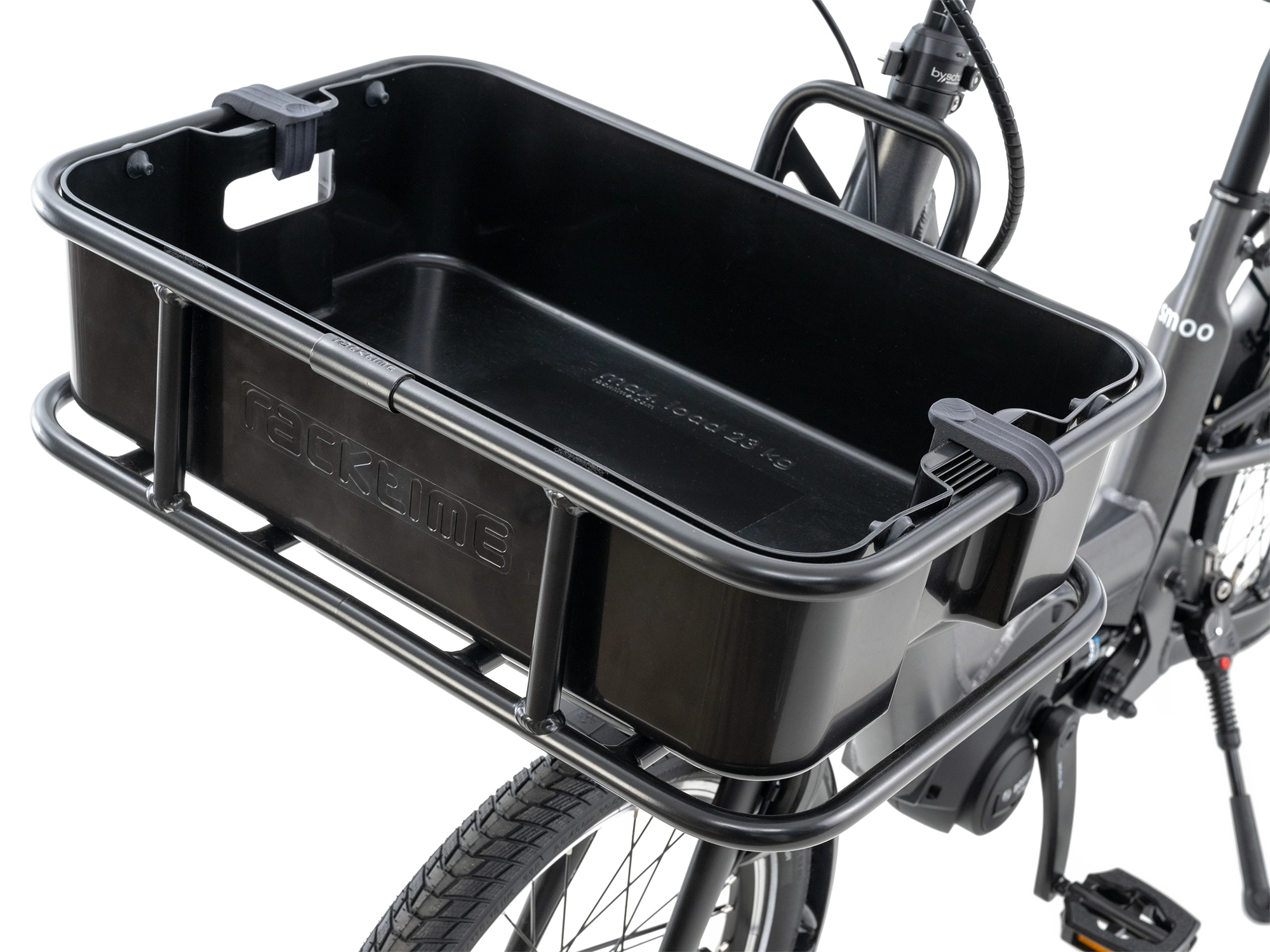 Optional ist ein moderner Frontträger erhältlich, der nicht nur zusätzlichen Stauraum bietet, sondern auch mit allen gängigen Klicksystem-Boxen kompatibel ist. Der wartungsarme Riemenantrieb arbeitet leise und sauber – perfekt für den täglichen Einsatz bei minimalem Pflegeaufwand.