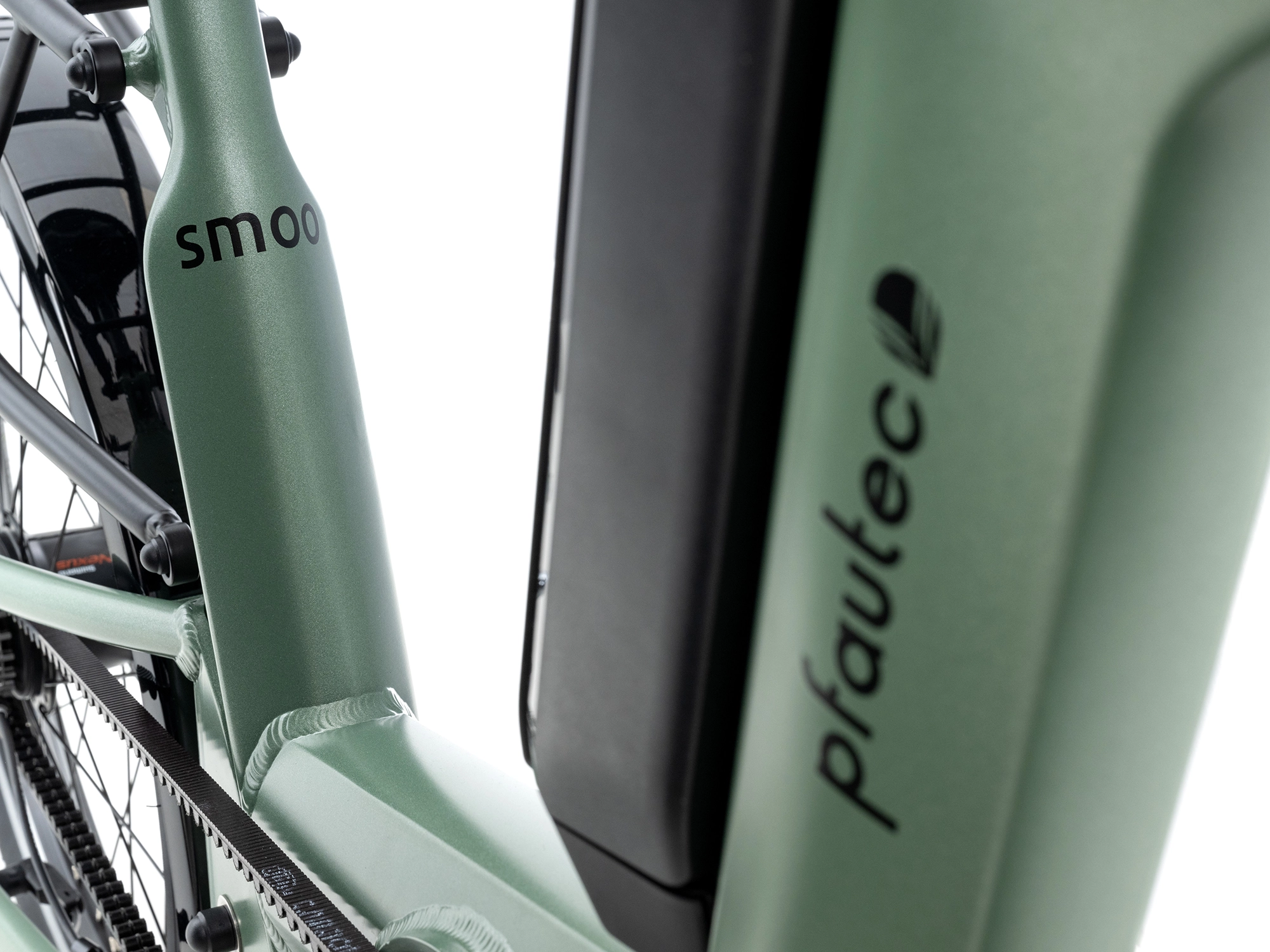 Das pfautec Smoo überzeugt mit einem gefederten Rahmen, der Unebenheiten effektiv abfedert und für eine angenehm ruhige Fahrt sorgt. Dank des verstellbaren Lenkervorbaus lässt sich der Lenker schnell auf die individuelle Sitzposition einstellen und für den Transport platzsparend um 90 Grad drehen.